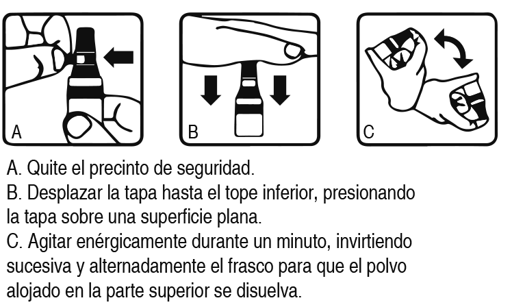 DOSIS: Comprimidos - Polvo para suspensión extemporánea: Estos medicamentos se dosificarán según indicación médica. Las dosis recomendadas se detallan a continuación: Adultos: Como antibacteriano se recomiendan dosis de 250 - 500 mg cada 6 horas. Para el tratamiento de gonorreas la dosis aconsejada es de 800 - 1000 mg cada 6 horas. Como agente profiláctico frente a infecciones estreptocócicas con historia de fiebre reumática, 250 - 500 mg cada 12 horas. Niños: 7.5 a 25 mg por kg de peso corporal cada 6 horas o 15 ó 50 mg por kg de peso corporal cada 12 horas. Ungüento: La posología será establecida por el médico en función de la severidad del proceso infeccioso a tratar. Como posología media de orientación, se aconseja: En el tratamiento de infecciones superficiales se sugiere aplicar aproximadamente 1 cm de longitud del ungüento directamente sobre el ojo infectado hasta 6 veces por día, dependiendo de la severidad del proceso infeccioso a tratar. Para la profilaxis de la oftalmia neonatal gonocócica o por Chlamydia, una línea de aproximadamente 1 cm de longitud debe aplicarse en cada saco conjuntival. El ungüento no debe fluir fuera del ojo luego de la instilación. Un nuevo vial debe ser utilizado por cada niño. Instrucciones de uso para viales monodosis: Lavarse las manos antes de abrir el vial plástico. Abrir el vial plástico rompiendo el precinto de seguridad. Separar el párpado inferior y aplicar el ungüento. Evitar que la punta del vial entre en contacto con la superficie ocular, los dedos u otra superficie a fin de evitar su contaminación. Desechar el resto de ungüento que hubiese quedado en el vial. Lávese bien nuevamente las manos para eliminar posibles restos del medicamento. Instrucciones de uso para ungüento en pomos: Lavarse las manos antes de abrir el pomo. Abrir el pomo rompiendo el precinto de seguridad en el primer uso. Separar el párpado inferior y aplicar el ungüento. Evitar que la punta del pomo entre en contacto con la superficie ocular, los dedos u otra superficie a fin de evitar su contaminación. Tapar el pomo después de cada uso. Lávese bien nuevamente las manos para eliminar posibles restos del medicamento. Mantenga el pomo bien cerrado y conserve en el envase original. Gotas Oftálmicas: La posología será establecida por el médico en función de la severidad del proceso infeccioso a tratar. Como posología media de orientación, se aconseja: En el tratamiento de infecciones oculares superficiales se sugiere instilar 1-2 gotas cada 4 horas en el/los ojo/s afectado/s. En infecciones graves, la dosis puede aumentarse a 2 gotas cada hora o según criterio del médico tratante. Instrucciones de uso: Lavarse bien las manos antes de abrir el precinto. Reconstituir la solución como se indica en la figura. Quitar la tapa y aplicar el producto: inclinar la cabeza hacia atrás y separar el párpado inferior del ojo dejando caer las gotas del medicamento en el saco conjuntival y mantener el ojo abierto por 30 segundos. Luego cerrar los ojos por 1 ó 2 minutos y abrirlos. Lavarse bien las manos para evitar posibles restos del medicamento. Tapar el frasco luego de cada aplicación. Importante: evite contaminar la punta dosificadora del envase. Preparación de las Gotas Oftálmicas: Ver