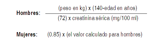 DOSIS: La dosis usual de Invanz en pacientes a partir de 13 años de edad es de 1 gramo (g) administrado una vez por día. La dosis usual en pacientes de 3 meses a 12 años de edad es de 15 mg/Kg dos veces al día (no excediendo 1 g/día). Invanz puede ser administrado por infusión intravenosa (IV) o por inyección intramuscular (IM). Al ser administrado por vía intravenosa Invanz debe ser dosificado por infusión durante un período de 30 minutos. La administración intramuscular de Invanz puede ser utilizada como alternativa a la administración intravenosa en el tratamiento de aquellas infecciones para las cuales la vía intramuscular sea la más apropiada. La duración usual del tratamiento con Invanz es de 3 a 14 días, si bien varía según el tipo de infección y el patógeno que la provoca (ver Indicaciones). Cuando se encuentre clínicamente indicado, y de haberse observado una mejoría clínica, puede implementarse un cambio a un antimicrobiano oral apropiado. En estudios clínicos controlados, los pacientes fueron tratados durante 3 a 14 días. La duración total del tratamiento fue determinada por el médico tratante sobre la base del sitio y la severidad de la infección, y de acuerdo con la respuesta clínica del paciente. En algunos de dichos estudios, el tratamiento fue convertido a terapia oral a discreción del médico tratante, luego que quedase demostrada la mejoría clínica. Pacientes con insuficiencia renal: Invanz puede ser utilizado para el tratamiento de infecciones en pacientes con insuficiencia renal. En pacientes cuyo clearance de creatinina sea > 30 ml/min/1.73m2, no es necesario efectuar ajustes de la dosis. Aquellos pacientes con insuficiencia renal avanzada (clearance de creatinina 30 ml/min/1.73 m2), incluidos los sometidos a hemodiálisis, deben recibir 500 mg diariamente. Profilaxis de infecciones quirúrgicas luego de una cirugía colorrectal electiva: Para la profilaxis de infecciones quirúrgicas luego de una cirugía colorrectal electiva, en adultos la dosis recomendada es una dosis única de 1g administrada de forma intravenosa una hora antes de la incisión quirúrgica. Pacientes en Hemodiálisis: En un estudio clínico, luego de una dosis única IV de 1g de ertapenem administrada inmediatamente antes de la sesión de hemodiálisis, aproximadamente 30% de la dosis fue recuperada en el dializado. Cuando se administra la dosis diaria recomendada de 500 mg de Invanz a pacientes en hemodiálisis dentro de las 6 horas previas a la hemodiálisis, se recomienda una dosis complementaria de 150 mg luego de la sesión de hemodiálisis. Si Invanz es administrado por lo menos 6 horas antes de la hemodiálisis, no es necesaria ninguna dosis complementaria. No se cuenta con datos en pacientes sometidos a diálisis peritoneal o a hemofiltrado. Cuando sólo se cuenta con una medición de la creatinina sérica, se puede utilizar la fórmula** siguiente para estimar el clearance de creatinina. La creatinina sérica debe representar un estado estable de la función renal. Ver Tabla No se recomienda realizar ningún ajuste de dosis en pacientes con una función hepática deteriorada. La dosis recomendada de Invanz puede ser administrada independientemente de la edad o el sexo del paciente.